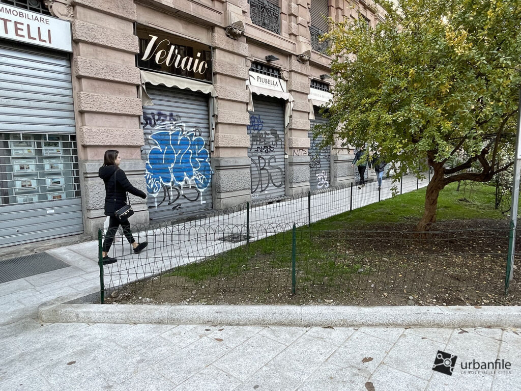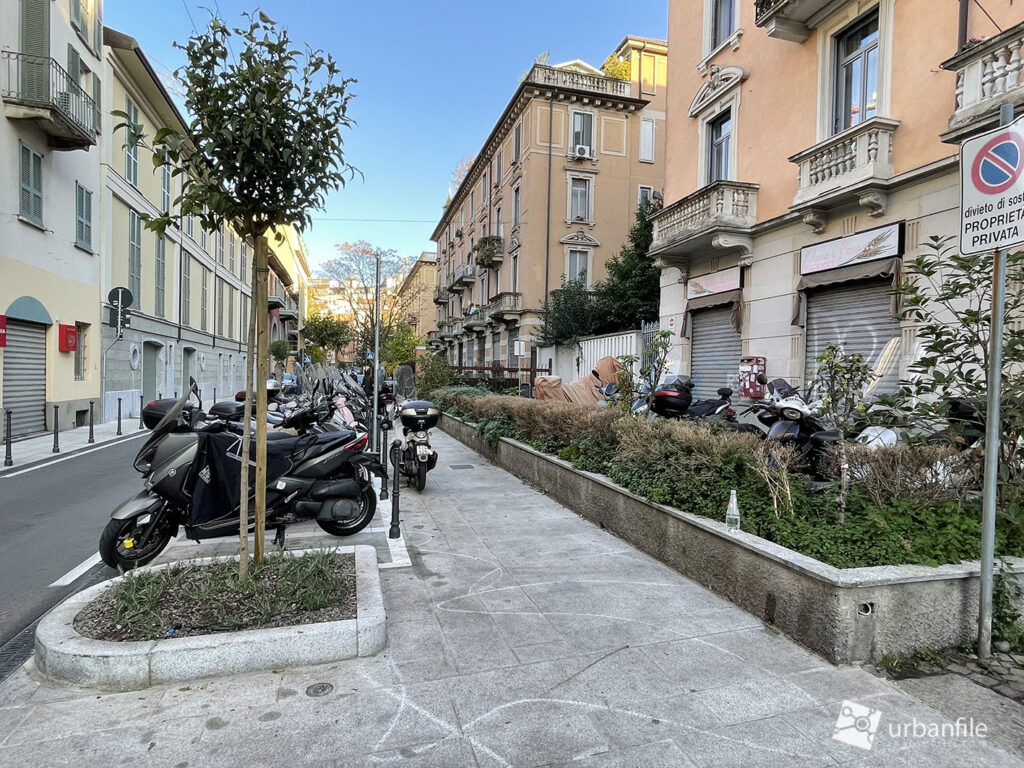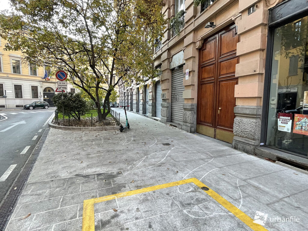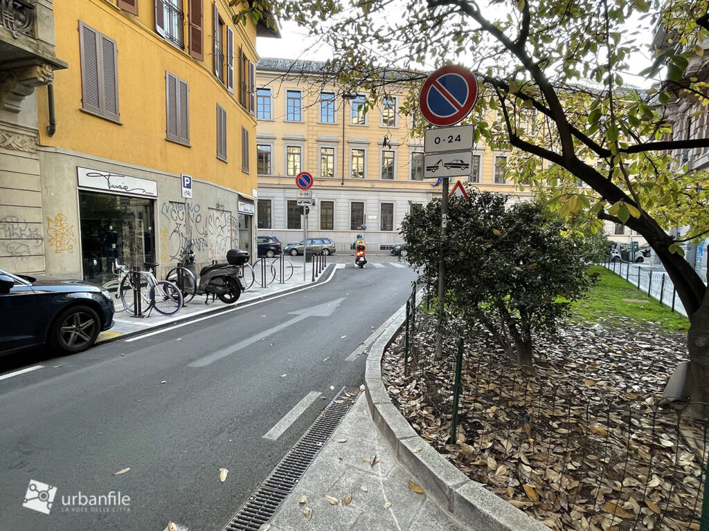 Per poi allargarsi abbastanza proprio imboccando Corso di Porta Romana. Qui vi era e vi è una grande aiuola.