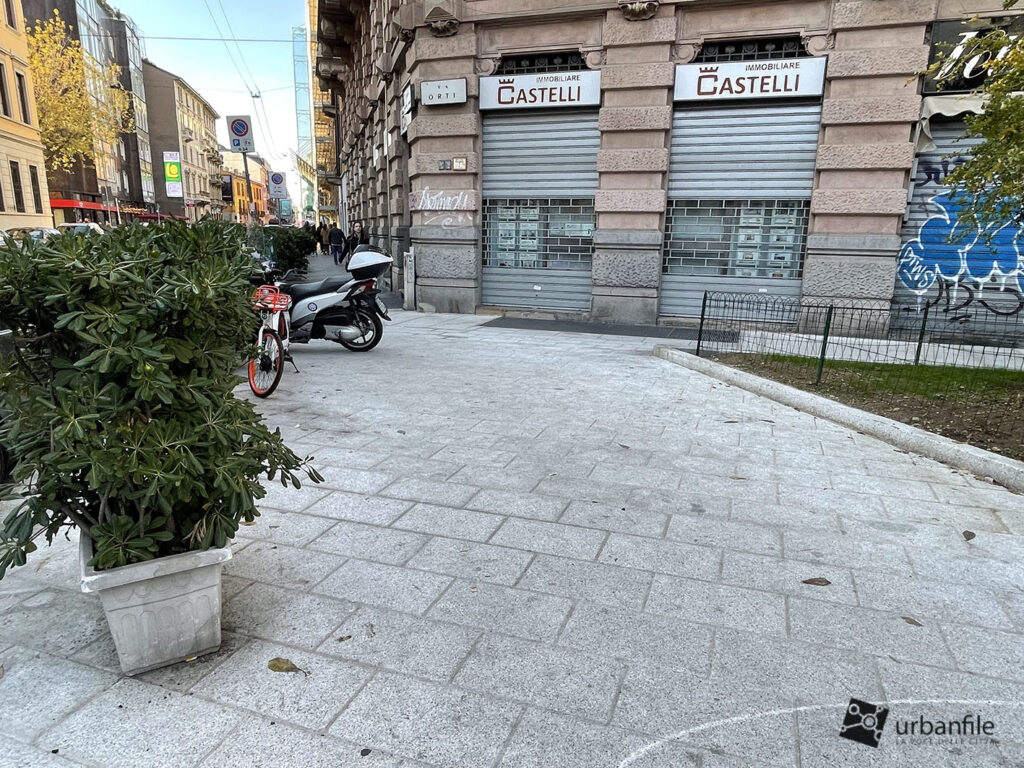 Eccoci all’incrocio con via della Commenda, dove la via Orti si stringe un po’ in direzione Corso di Porta Romana.