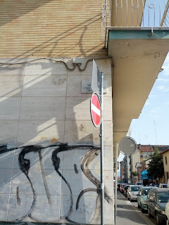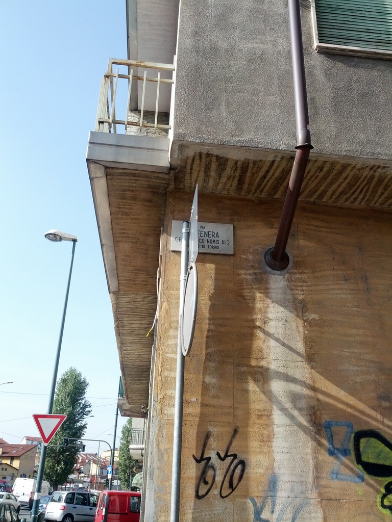 A pochi passi dalla stazione Dora GTT, in largo Stradella, ci si è imbattuti in questi cartelli di indicazione della via. Solo che…si è dovuto faticare per trovare l’angolazione giusta che permettesse di leggere il nome della stessa.