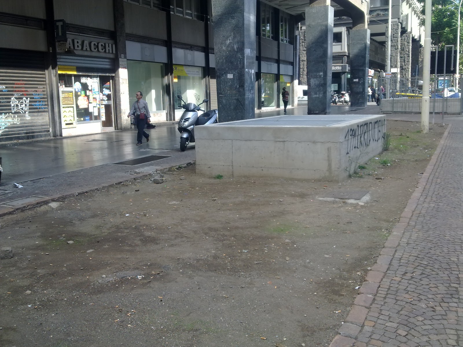 Aiuola “deserta” e, a lato, un altro dei futuri accessi alla stazione metro
