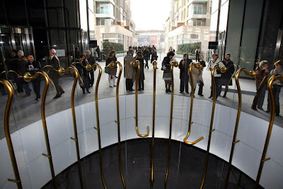 “questi tubi collegano tra loro vari luoghi e spazi dell’edificio quest’opera è dedicata a chi passando di qui penserà alle voci e ai suoni della città”