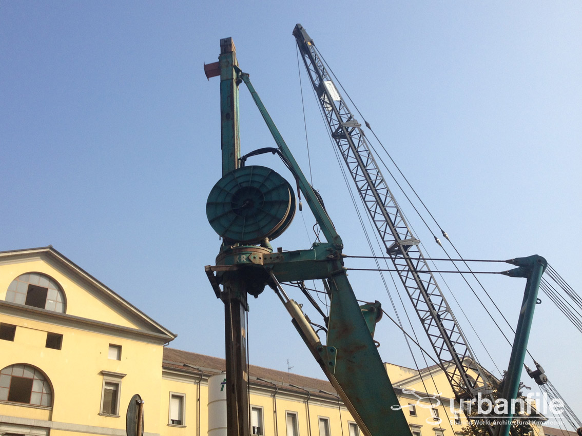 La situazione degli scavi a Sant’Ambrogio in questi giorni. Il cantiere pare stia procedendo celermente, le macchine palificatrici o battipalo stanno lavorando a gran ritmo delimitando le pareti per lo scavo.