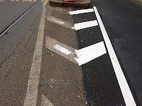 L’isolato di Via Vitruvio tra Benedetto Marcello e Settala ci riserva sempre delle incredibili chicche urbane. Qualche giorno fa è stato ripassato il colore bianco nei punti della segnaletica orizzontale recentemente oggetto di nuova asfaltatura (già avemmo occasione di parlare proprio di questo in data 26 ottobre scorso). Diciamo che il lavoro di ritocco è stato fatto con una precisione da barzelletta che, però, più che far ridere lascia soltanto un’imbarazzante sensazione di disagio. Le immagini parlano da sé e noi preferiamo non commentare ulteriormente.