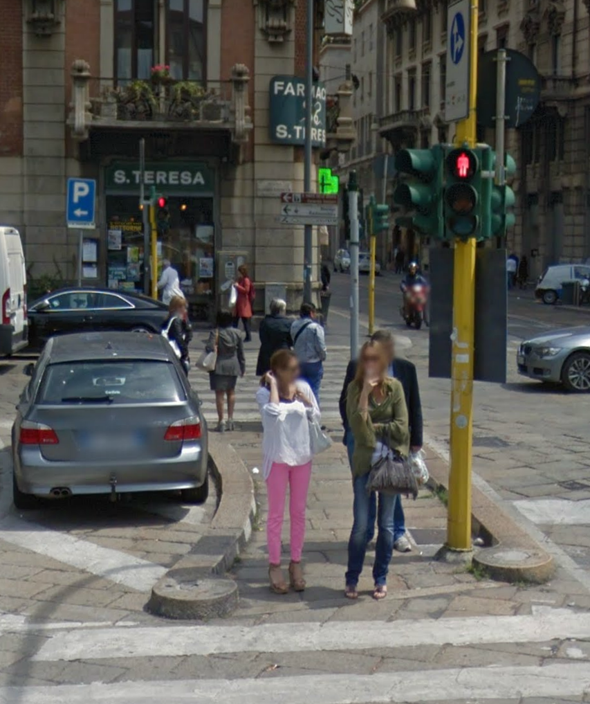 | Qui siamo a Porta Venezia, il colonnino lo si vede sulla destra, vicino all’omino. |