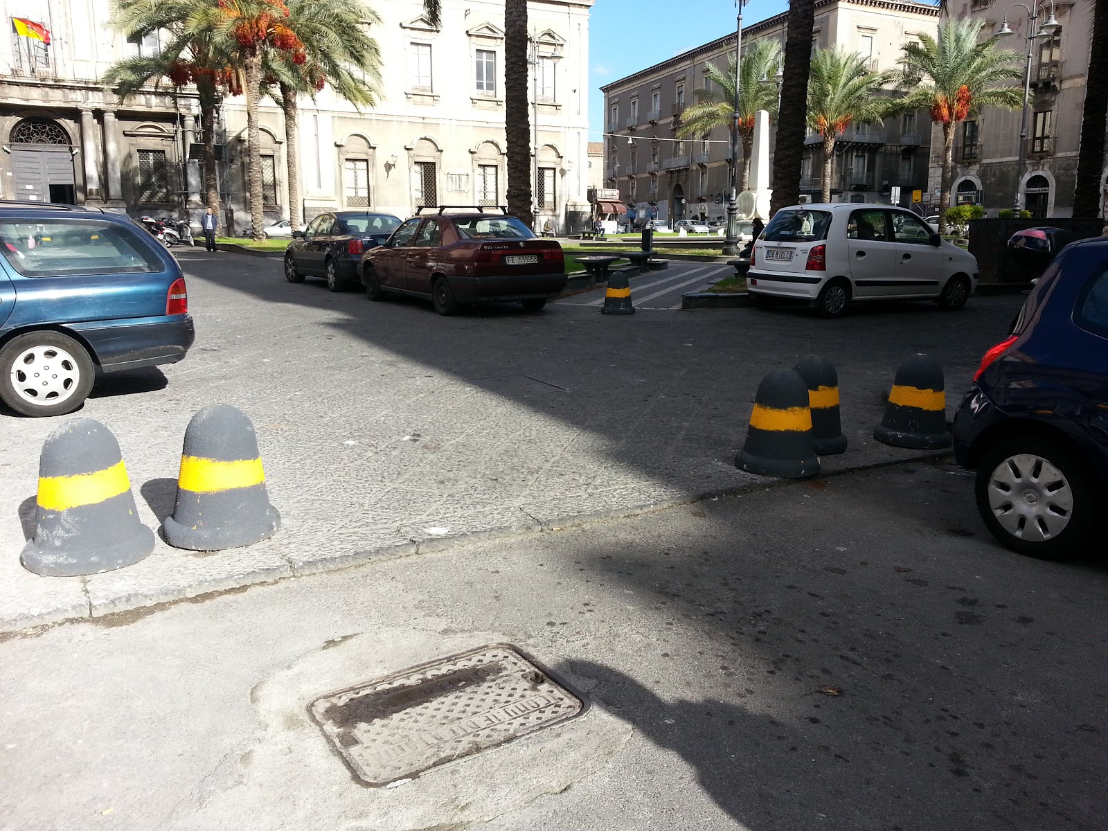 Ad esempio, per quanto riguarda la zona del Teatro Massimo: in via Landolina all’incrocio con via Valle (e non all’incrocio con piazza Vincenzo Bellini) o in via Maria Callas all’incrocio con via Pulvirenti. Per quanto riguarda piazza Cutelli, invece, questi andrebbero collocati in via Porta di Ferro all’incrocio con via Aparo. In questo modo, inoltre, si eviterebbe di creare dei vicoli ciechi (dal punto di vista viabilistico) che a Catania si trasformano puntualmente in mini aree di parcheggio selvaggio col doppio effetto di costituire una barriera architettonica e visiva, così come avviene in via Alessi all’incrocio con via San Giuseppe al Duomo, specialmente nelle ore notturne.