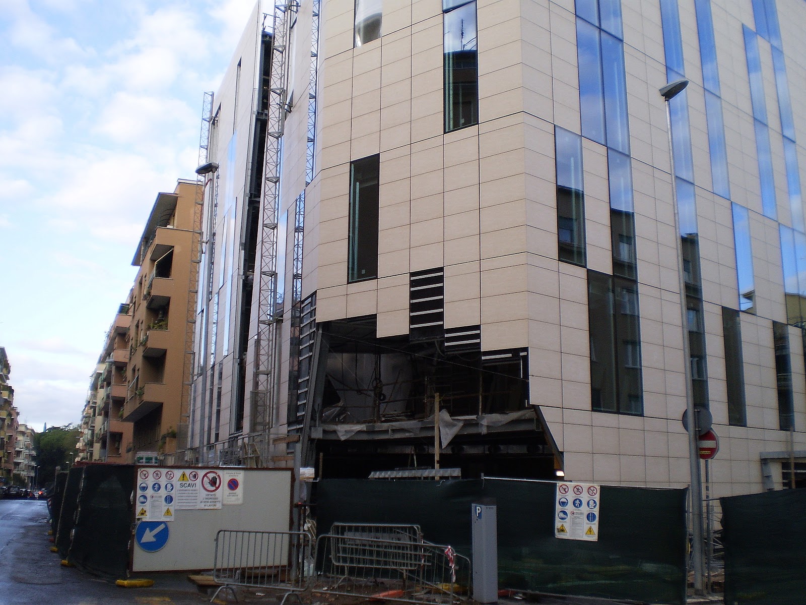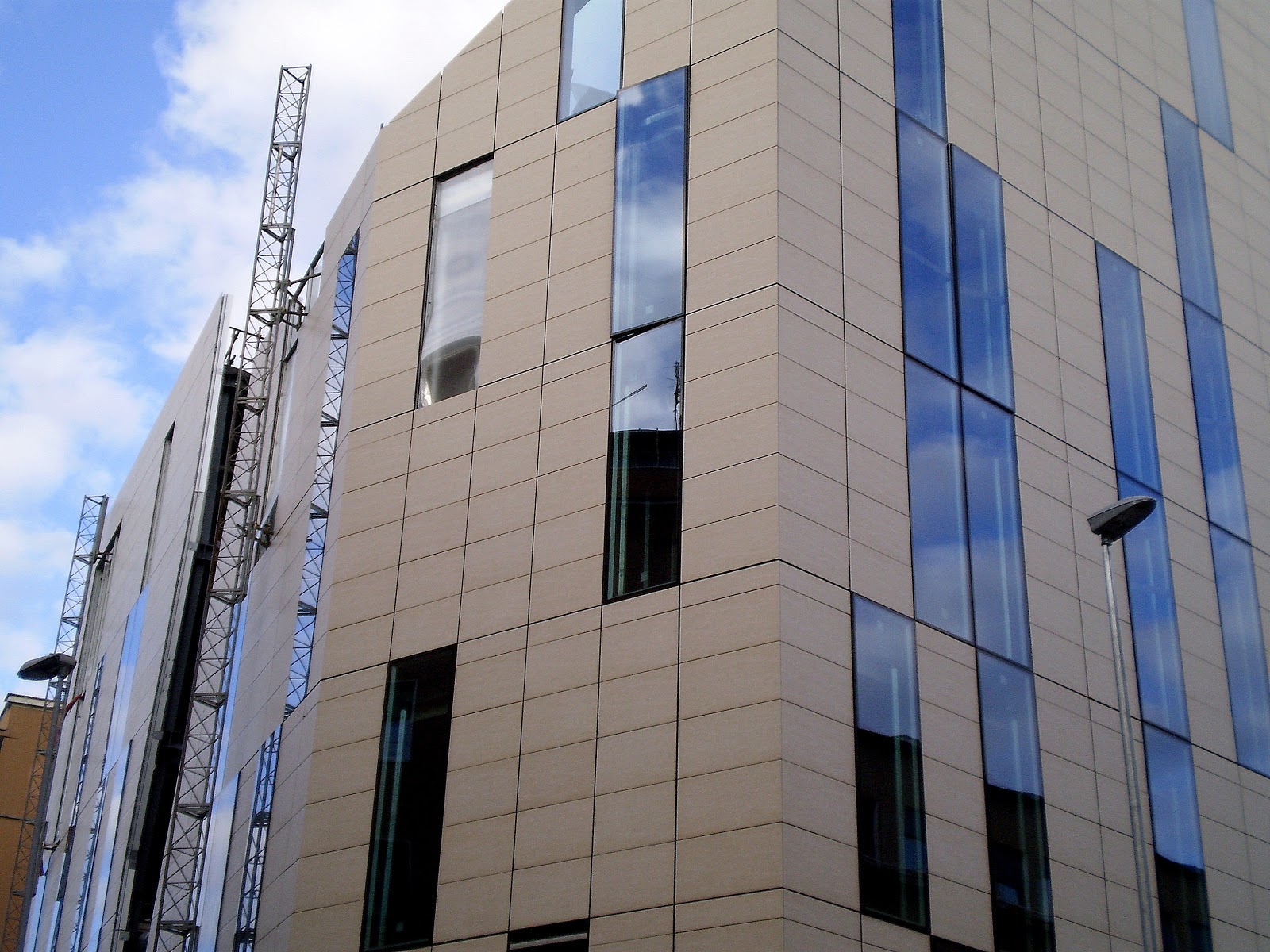 Il palazzo si configura come una struttura moderna e si stacca nettamente dall’architettura della zona, costituita principalmente da un’edilizia dell’immediato dopoguerra.