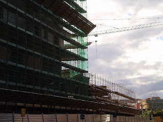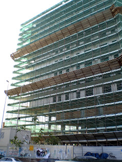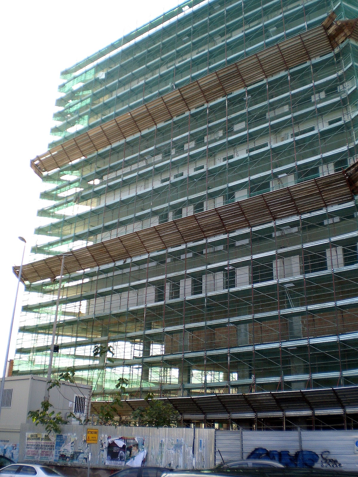 Lo scheletro della torre residenziale è ormai ultimato e si sta provvedendo ad eseguire i rivestimenti esterni.