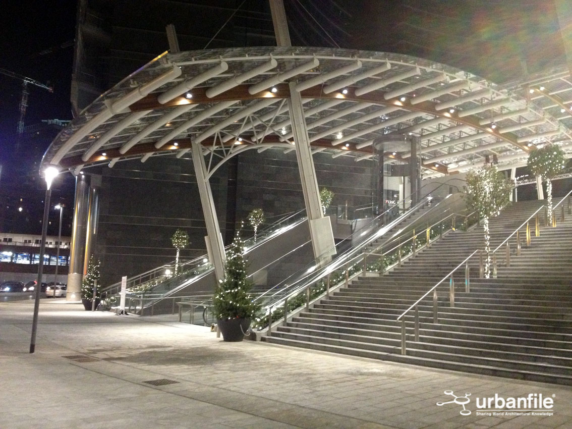 Ieri sera ho affrontato con coraggio il gran freddo di questi giorni e mi sono recato a visitare la nuova piazza fresca fresca di inaugurazione, dato che non avevo avuto occasione di andarci nel weekend appena trascorso. Bella e scenografica, moderna e accogliente. Gli elementi predominanti sono l’acqua e la pietra. Molto intelligente anche l’idea di installare al centro una delle strepitose lampade Artemide che tempo fa avevo visto al Salone del Mobile. Emozionante anche la fontana, solcata da tre “sentieri”.