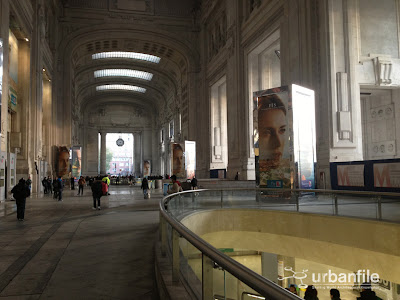 Galleria delle Carrozze; ci troviamo nella splendida Stazione Centrale di Milano da poco ristrutturata non senza aver sollevato perpessità quali, a esempio, l’alterazione dei mosaici della sala arrivi causata dall’apertura delle sezioni per le scale mobili.