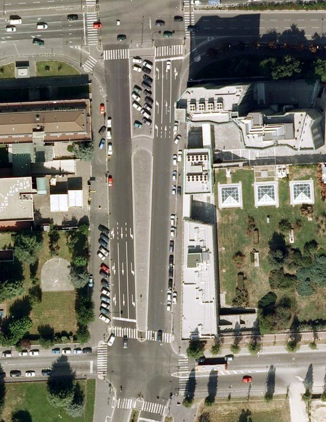 Via San Vigilio, zona Quartiere Sant’Ambrogio e Moncucco, è una via molto larga e breve, dove la auto vengono perennemente parcheggiate sui marciapiedi. Mi chiedo perché sono stati fatti questi marciapiedi così larghi, non siamo in corso Buenos Aires dove viene solcata da milioni di persone. Basterebbe sistemare questi marciapiedi più piccoli, lasciando più spazio alle auto, ordinandole nel parcheggio. Magari al centro fare un filare di alberi, insomma, riordinare e rendere più vivibile alla vista tutto questo desolante luogo. Pensare che Via Ovada, che si incrocia a due passi con Via San Vigilio, è stata sistemata qualche anno fa in modo perfetto, parcheggio a lisca e aiuolette agli angoli.