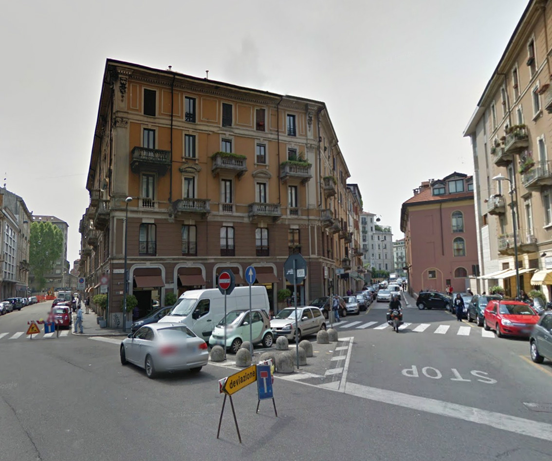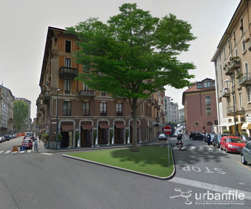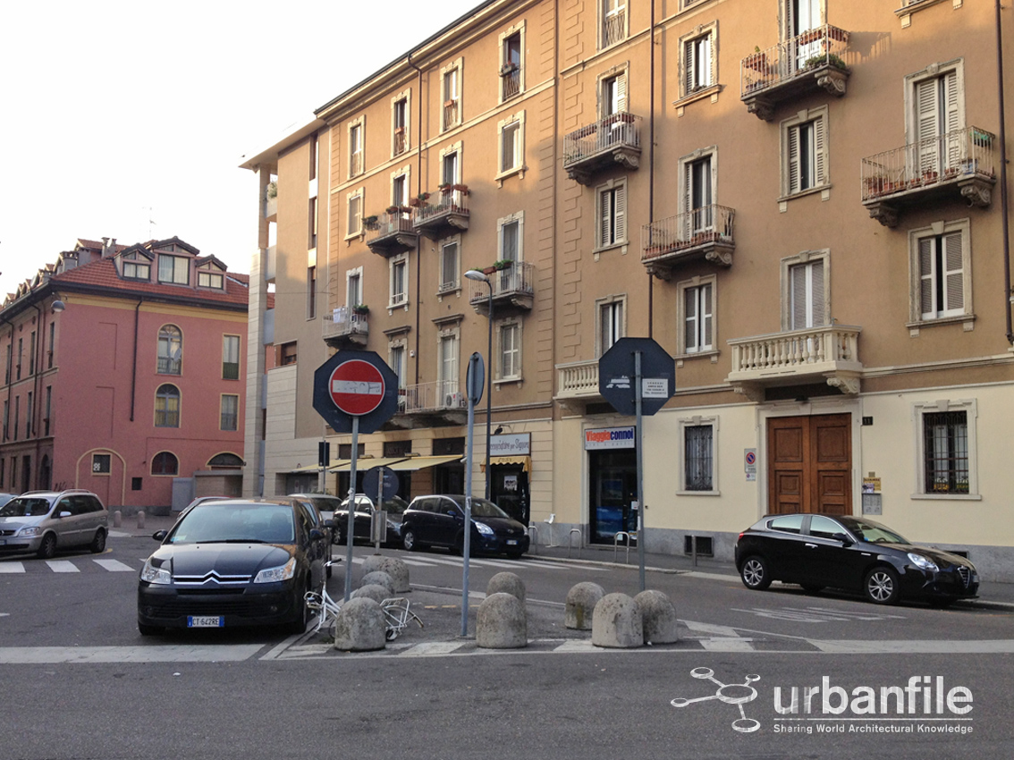 Ancora un altro luogo dove inverdire la grigia Milano. Al posto di questo guazzabuglio di panettoni in via Muratori, sistemato alla bell’e meglio dove la via incrocia Via Vasari, non sarebbe più gradevole un’aiuola? Magari con una bella pianta al centro?