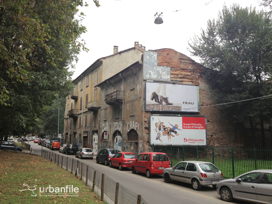 Ai civici 17, 19 e 21 di Via Conca del Naviglio troviamo un gruppetto di vecchi edifici decadenti, superstiti sia a sventramenti della Seconda guerra mondiale sia a discutibili piani regolatori decisi negli anni della ricostruzione post bellica e abbandonati già da decenni. Penso che la loro destinazione futura sia l’abbattimento totale, perché che dovrebbe essere prevista la realizzazione dell’attiguo Parco dell’Anfiteatro Romano. Perché ci mettono però così tanto tempo per procedere?