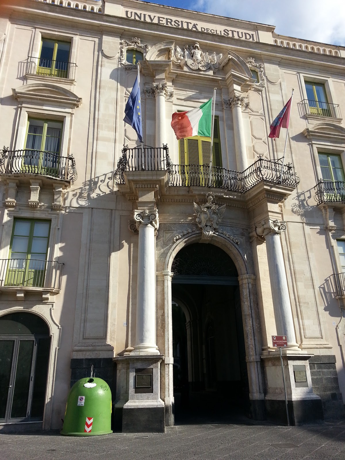 Sono state collocate, infatti, di fronte ai magnificenti prospetti del Palazzo Centrale dell’Università e del Palazzo Sangiuliano; in questo caso una è addirittura a fianco dell’accesso principale centrale.