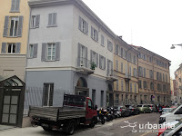 Devo dire che finalmente quest’angolo del centro milanese, devastato dalle bombe della Seconda guerra mondiale, è stato rimesso a posto come si deve. Qui infatti, fino a pochi anni fa, giacevano abbandonati i ruderi di una casa. La nuova costruzione ricorda una classica palazzina milanese di fine Ottocento. Pare sia stato anche ricavato un piano in più, pur mantenendo la stessa altezza dell’edificio. Questo lo si evincerebbe confrontando il nuovo edificio e il vicino vecchio palazzo, del quale ricopierebbe i cornicioni e la parte inferiore grigia. In quest’opera di ricostruzione si è intervenuto anche risistemando il vecchio rudere superstite. Il palazzo ha pure un piccolo cortile aperto sulla via. Francamente non ho mai capito se questa specie di giardinetto ci sia sempre stato o se sia stato ricavato successivamente agli sventramenti bellici.