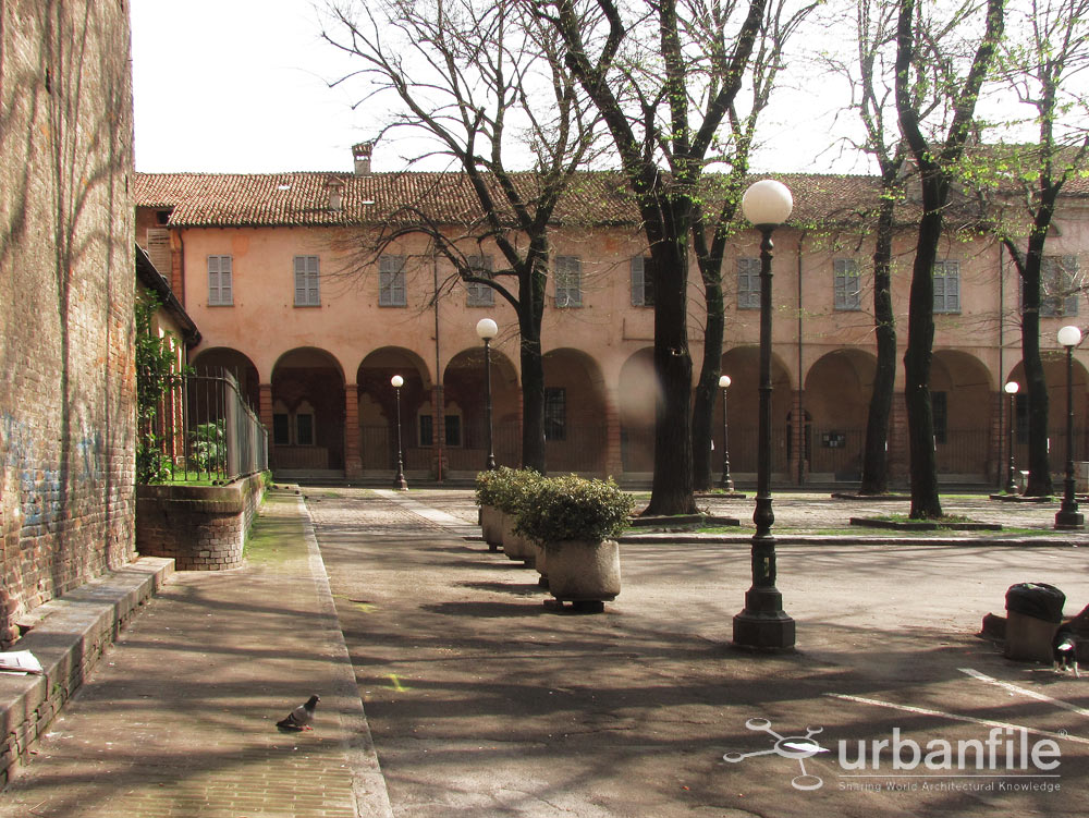 Lo spazio oggetto dell’intervento è caratterizzato da presenze architettoniche di un certo pregio, a partire dall’imponente prospetto laterale della Basilica di San Francesco, costruita in stile gotico lombardo, ed i chiostri superstiti annessi, fino ad arrivare all’elegante “Casa Metti“, edificio del 1927 progettato dall’architetto piacentino Oreste Labò. In questa pagina se ne può ammirare la magnifica porta d’accesso in stile Liberty, opera di Giuseppe Muratori. Completa la piazza, l’austera e massiccia mole di Palazzo INPS, edificio in stile razionalista italiano sorto negli anni ’30 in sostituzione di numerosi palazzetti antichi che formavano parte di un isolato prospiciente Piazza Cavalli, Piazzetta San Francesco ed il tratto terminale di Via Sopramuro. La stessa Piazzetta Plebiscito è nata come spazio di risulta delle suddette demolizioni, che interessarono anche parte dei chiostri di San Francesco.