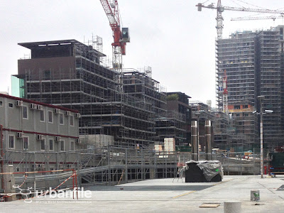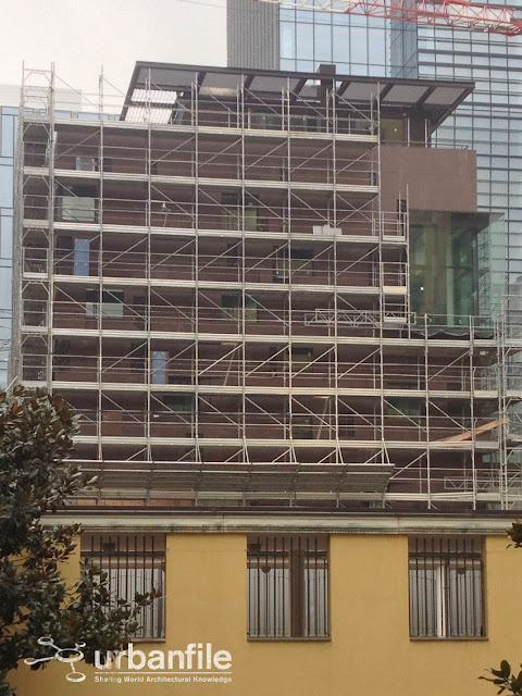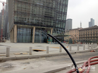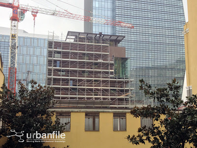 Ai piedi delle possenti torri, iconiche del grande progetto di Porta Nuova, stanno prendendo forma le 5 ville urbane di tre piani, affiancate da un piccolo condominio più alto, progettate dallo Studio M2P Associati e, a parer mio, molto belle. A separarle dagli uffici a Nord verrà interposto un giardino, mentre sul lato meridionale le nuove costruzioni si affacceranno su una via, anch’essa nuova, di ridotte dimensioni che condivideranno con le proprietà cui attualmente si accede da via Marco Polo.
