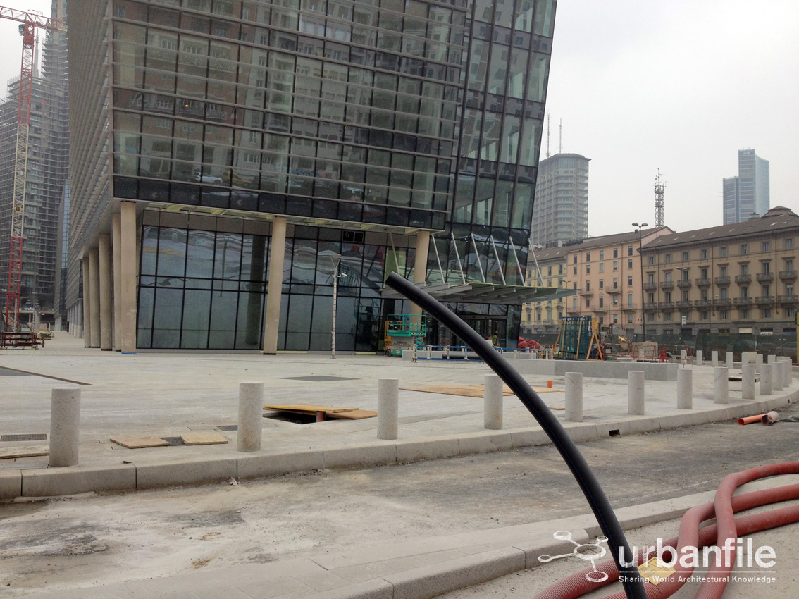 Ai piedi delle possenti torri, iconiche del grande progetto di Porta Nuova, stanno prendendo forma le 5 ville urbane di tre piani, affiancate da un piccolo condominio più alto, progettate dallo Studio M2P Associati e, a parer mio, molto belle. A separarle dagli uffici a Nord verrà interposto un giardino, mentre sul lato meridionale le nuove costruzioni si affacceranno su una via, anch’essa nuova, di ridotte dimensioni che condivideranno con le proprietà cui attualmente si accede da via Marco Polo.