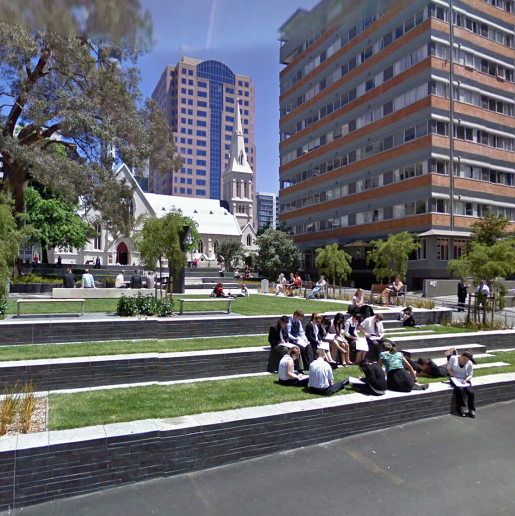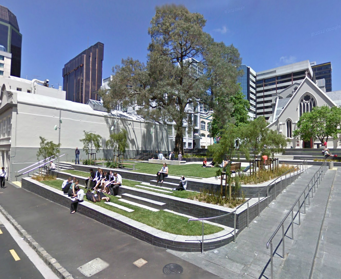 Bella l’idea delle aiuole alzate a 50/60 centimetri dal livello stradale, così da consentire alla gente di sedersi facilmente ai bordi del verde, peccato che abbiano pensato a quattro risicati fazzoletti di terra destinati a cespugli. Io avrei riempito gli spazi tra i caselli e i palazzi con grandi aiuole, con superfici a prato e forse qualche cespuglio, attraversate da vialetti lungo le diagonali per permettere il transito veloce dei passanti.