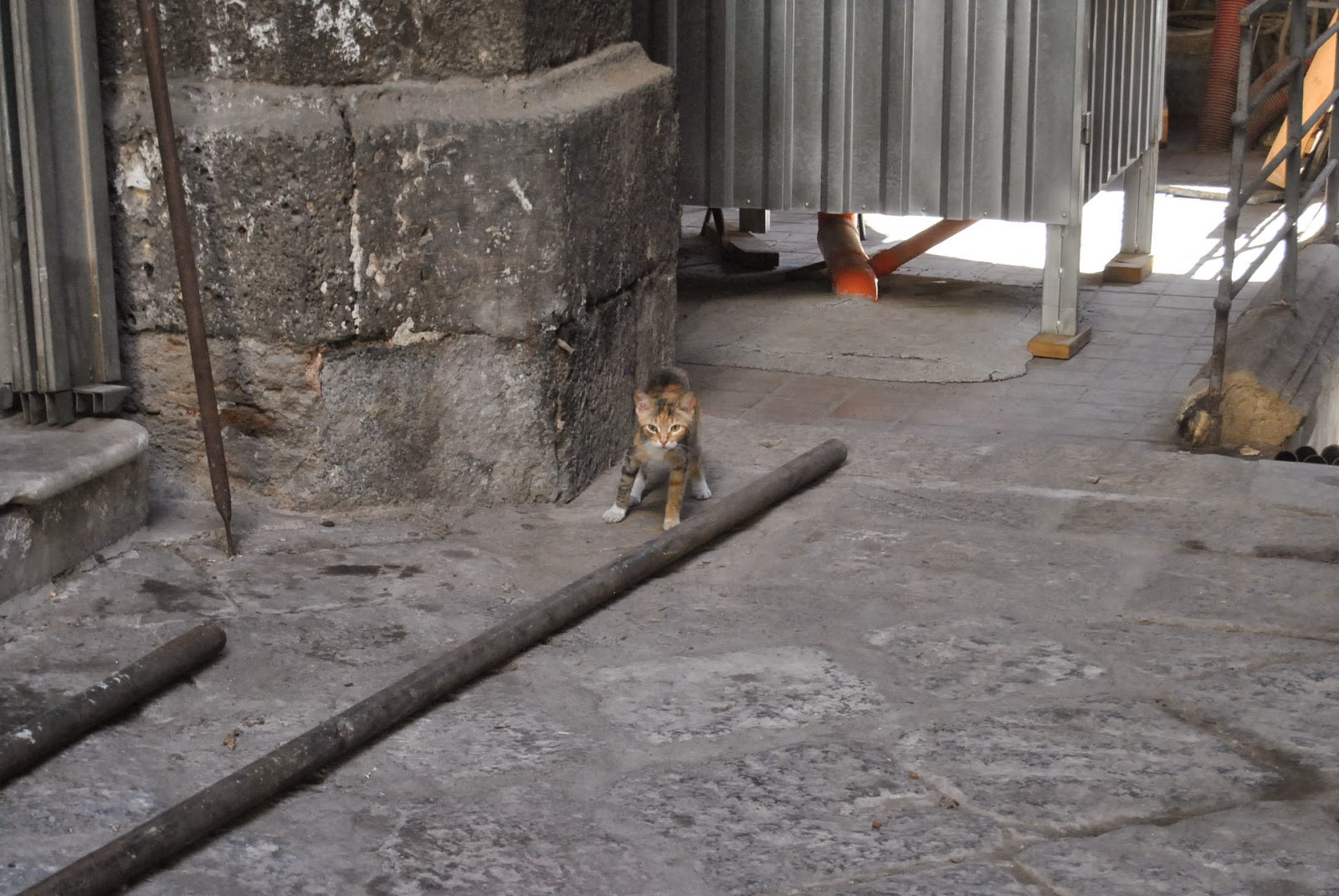 Ma come tutti gli altri reperti che ancora si trovano in balia degli elementi nel cortile e hanno anche loro mille storie da raccontare (chissà che non riusciremo ad udirne per il lettore alcuna), si trova all’aperto, senza protezione da possibili vandalismi, senza nemmeno una targa o un cartello che, almeno questo, restituisca al manufatto il suo nome e con esso la sua – seppur tragica – storia.