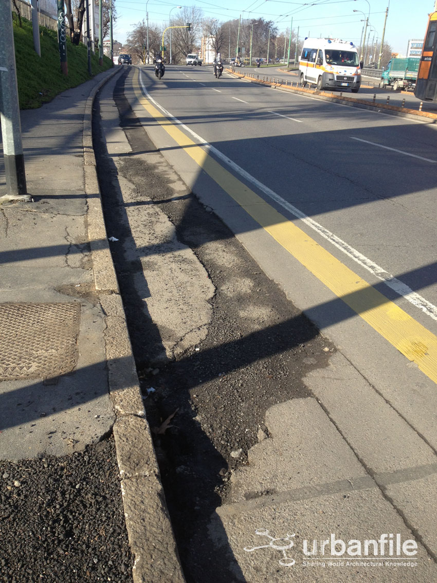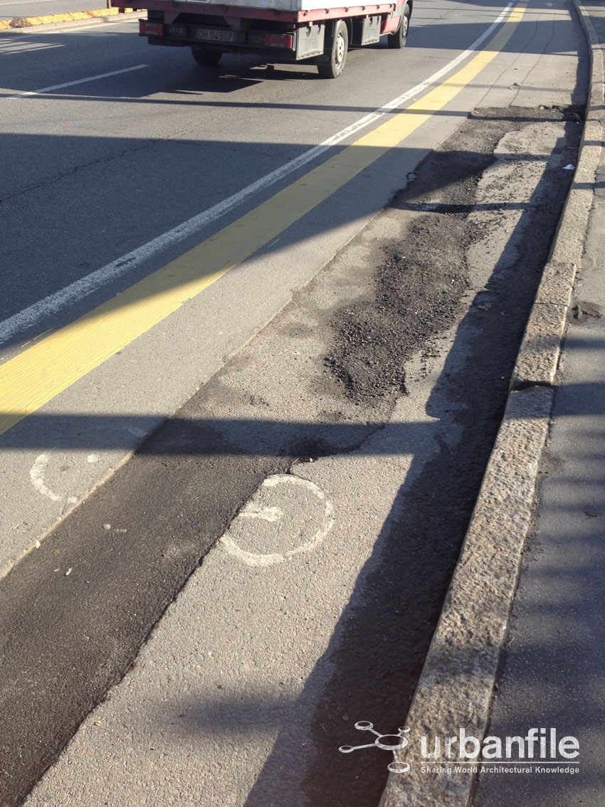 Nella zona di San Cristoforo, lungo Viale Cassala, tempo fa venne creata una pista ciclabile, semplicemente segnata a terra con la vernice. Stranamente è stata quasi sempre rispettata dagli automobilisti. Peccato che recentemente sia stata interessata da un lavoro di scavo per motivi tecnici, e sia stata poi risistemata in modo così grossolano da lasciare una piccola fenditura nell’asfalto. Questo solco di circa due centimetri è decisamente pericoloso per le biciclette, specie quelle da corsa: infatti alcuni ciclisti, che son passati nel momento in cui stavo osservando la cosa, si sono tenuti alla larga dalla pista ciclabile invadendo nella carreggiata. Sarà il caso che il Comune intervenga al più presto.