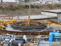 Queste foto che seguono riguardano l’area attorno alla grande rotonda che costituirà il raccordo centrale della viabilità sotterranea del nuovo insediamento, consentendo lo smistamento dei veicoli in arrivo dagli accessi esterni. Ricordo che nel sottosuolo di CityLife ci saranno parcheggi privati, pubblici, di servizio, una fermata della metropolitana (linea 5), un centro commerciale e forse un cinema multisala.