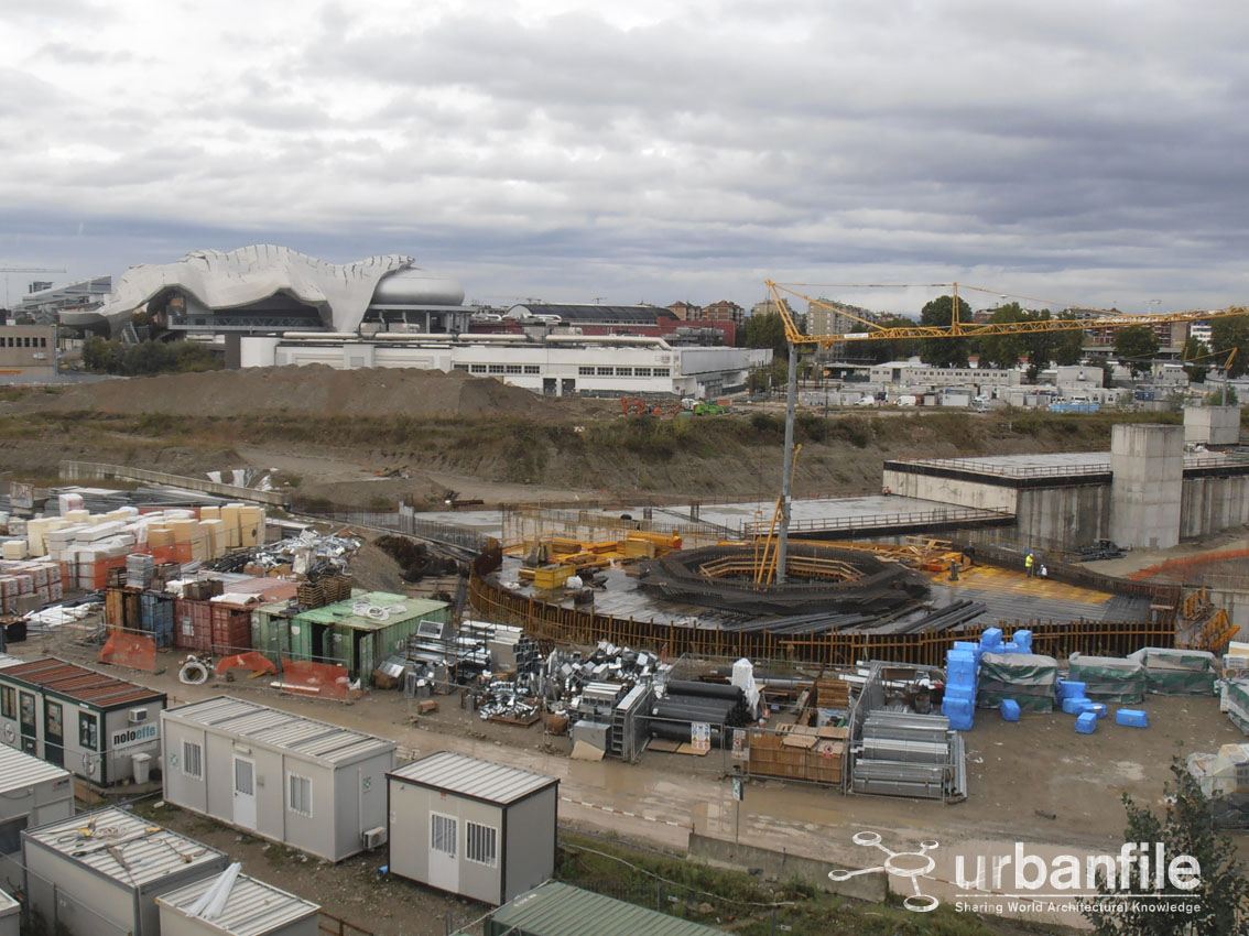 Queste foto che seguono riguardano l’area attorno alla grande rotonda che costituirà il raccordo centrale della viabilità sotterranea del nuovo insediamento, consentendo lo smistamento dei veicoli in arrivo dagli accessi esterni. Ricordo che nel sottosuolo di CityLife ci saranno parcheggi privati, pubblici, di servizio, una fermata della metropolitana (linea 5), un centro commerciale e forse un cinema multisala.