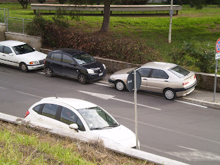 Invece, là dove la via ha un’ampiezza accettabile, l’assenza di dissuasori fa si che le autovetture si piazzino sui marciapiedi, costringendo la gente a camminare in mezzo alla strada.