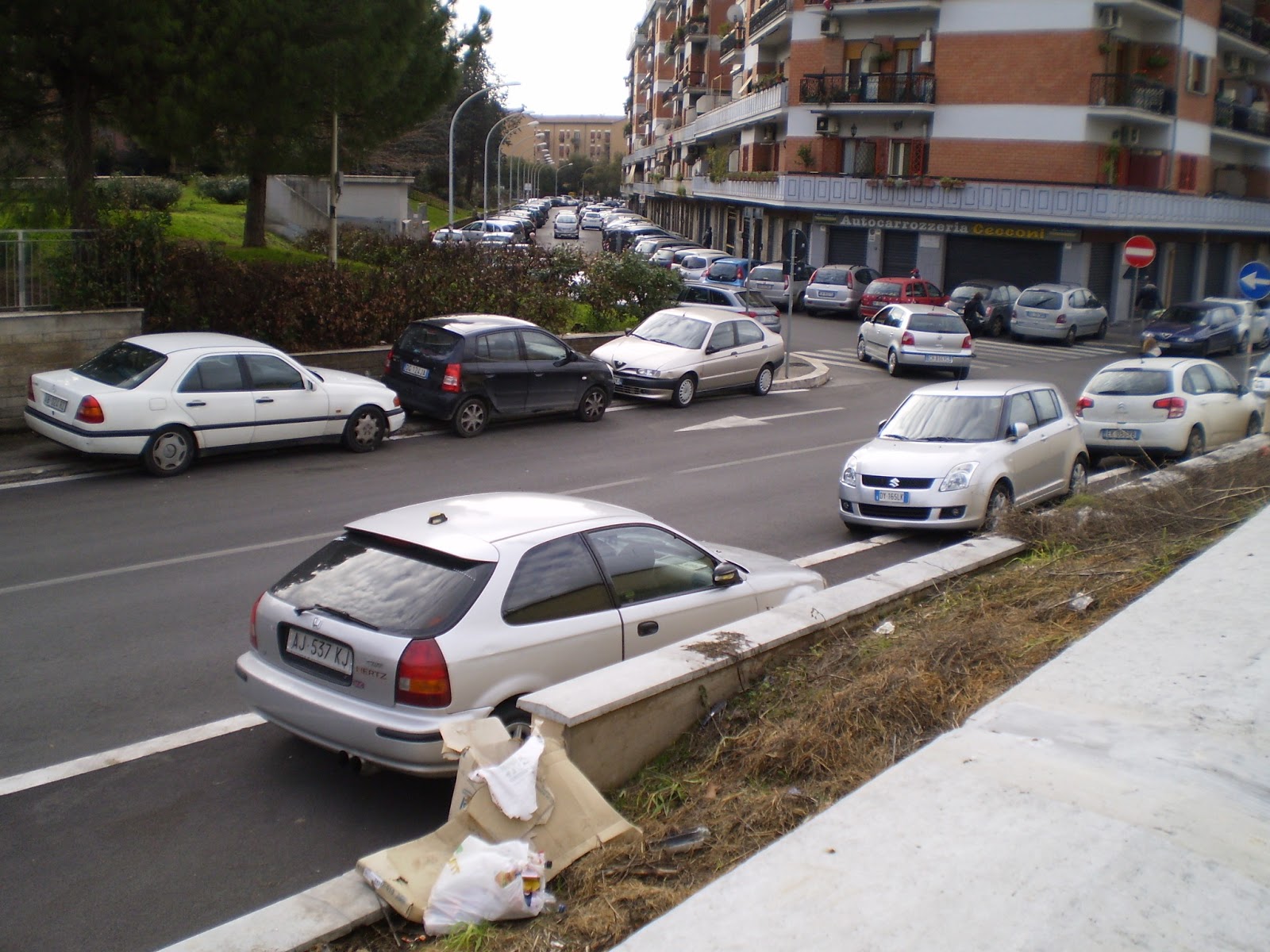 Questo a causa della cattiva pianificazione della strada, cui l’ultimo tratto è stato lasciato a doppio senso di marcia, con un’ampiezza della carreggiata eccessivamente ampia tale da consentire il parcheggio selvaggio.