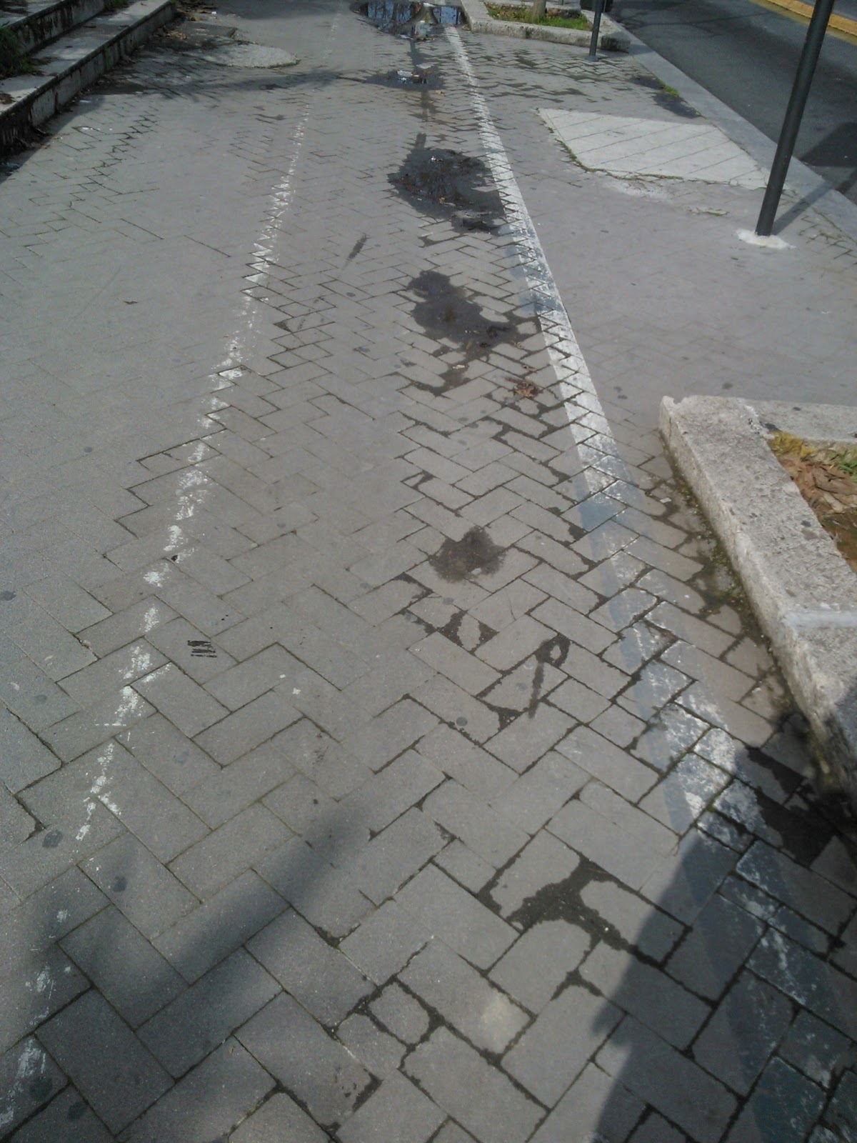 Bene furono ricoperte dopo poco tempo che erano state inaugurate, con una vernice nera perché essendo sui marciapiedi intralciavano i pedoni e spesso le piste si interrompevano davanti edicole, aiuole e pali della luce esistenti.Sarebbe stato più logico apportare delle modifiche al tracciato e/o spostare edicole e pali pubblicitari..!