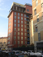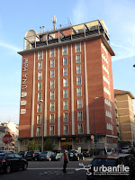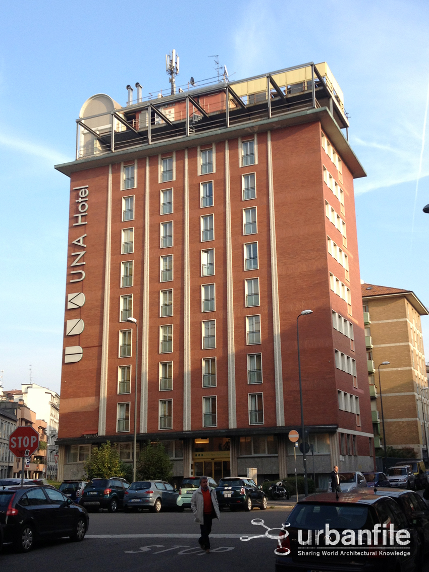 In Via Muratori c’è l’UNA hotel, un palazzo anni Cinquanta-Sessanta, senza grandi pretese architettoniche collocato in una posizione molto particolare, esattamente dove la via Muratori incrociando la Via Colletta Pietro si divide in due, proseguendo da un lato e dando origine dall’altro alla Via Bernardino Corio. La costruzione risulta molto importante quindi, perché si affaccia su uno slargo che è quasi una piazza. Eppure, ha un aspetto piuttosto dozzinale. In più negli anni 90 la torre è stata sopralzata di un piano che non è mai stato completato, così ancora oggi, dopo vent’anni, il palazzo risulta incompleto. Chissà cosa avrà bloccato i lavori. Una fastidiosa visione che dobbiamo ancora per molto tempo subire passandoci sotto.