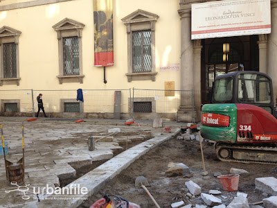 Finalmente dopo alcune settimane (un mese) di lavori fermi all’area pedonale davanti all’Ambrosiana, come promesso dall’Assessore alla Mobilità, Ambiente e Arredo urbano, Pierfrancesco Maran, sono ripartiti col cantiere.