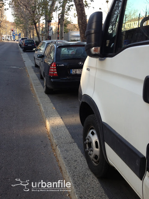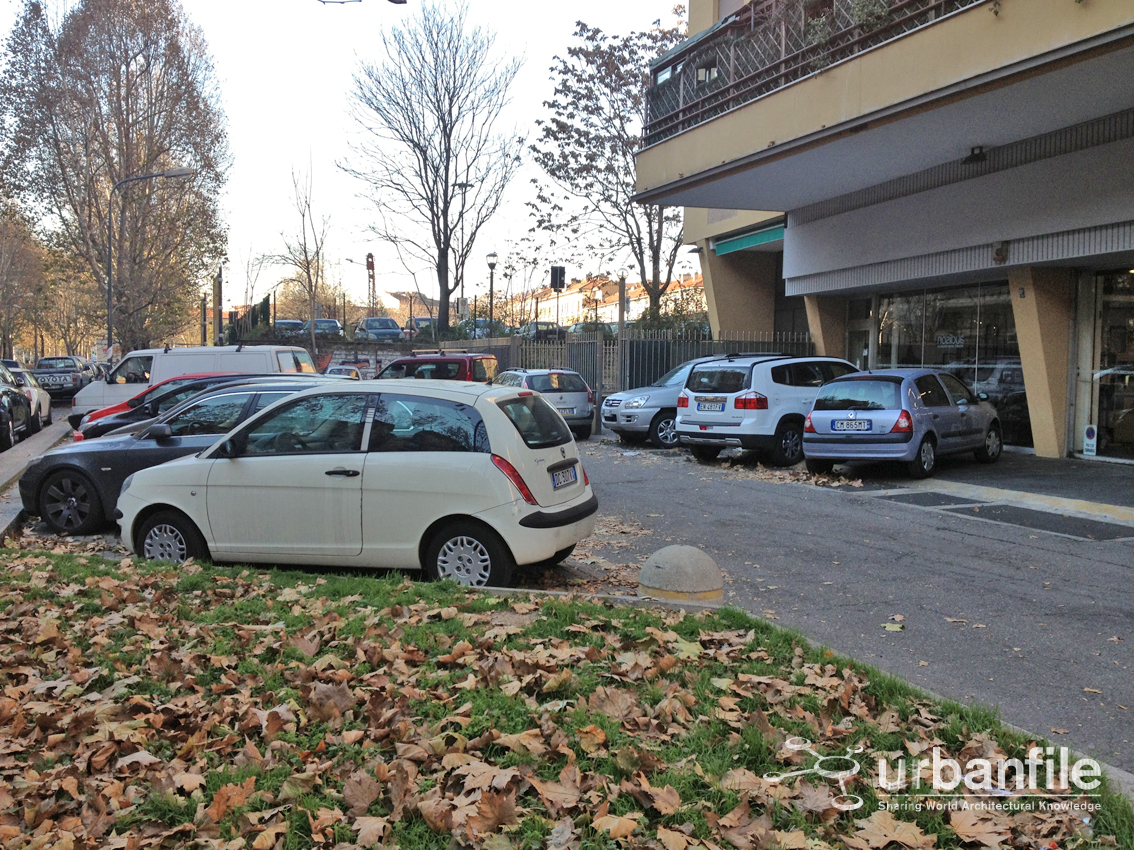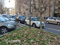 In Viale Francesco Crispi ci sono auto parcheggiate ovunque. Pochissime persone camminano lungo il marciapiede, perché il viale non ha vocazione commerciale né collega punti di particolare passaggio, e per questo alcuni automobilisti si prendono il diritto di occupare il marciapiede parcheggiandovi la propria automobile. Ecco una sfilata di autovetture ben parcheggiate dove non dovrebbero.