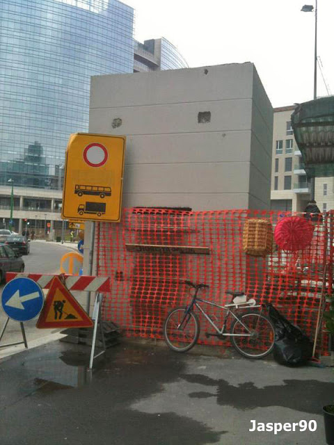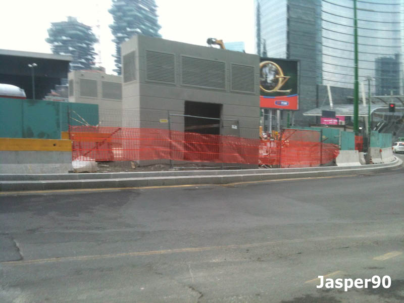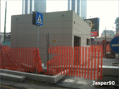 Mi chiedo il motivo della realizzazione di così tanti manufatti che ospitano le uscite della metropolitana. Probabilmente saranno necessari ma denotano l’inesorabile goffaggine che circonda M5. Almeno avrebbero potuto realizzarli meno invasivi. Credo che le strutture fuori terra realizzate siano ben 6, destinate a vari usi (dalla areazione della stazione sottostante alle uscite con ascensore) e finite superficialmente con intonaco a strisce incise; pronte per diventare bersaglio di chi fa le tag sui muri. Insomma, la solita poca attenzione al decoro che sta caratterizzando la linea Lilla.