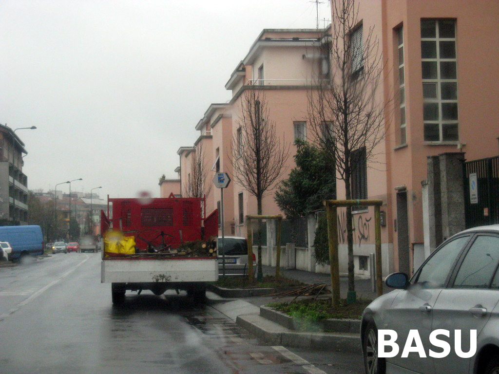 In questi giorni a Milano stanno piantumando alberi ovunque. Ecco la situazione in Via Arnaldo Vassallo; qualche anno fa la via venne risistemata con spazi per parcheggio intelligenti (vorrei tutte le vie così in città), creando inoltre delle aiuole ad ogni passo carraio o incrocio. Finora lasciati a verde ma senza alberature, finalmente questi spazi avranno degli alberelli.