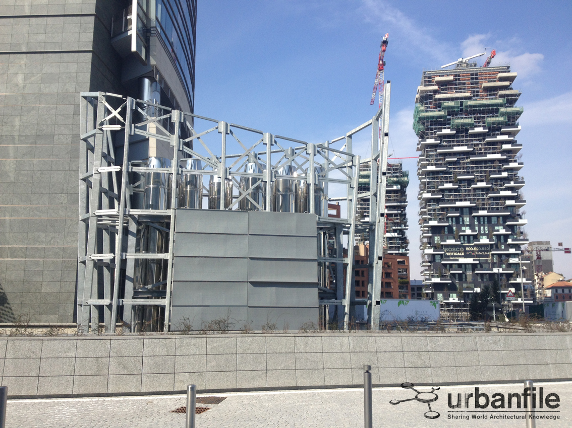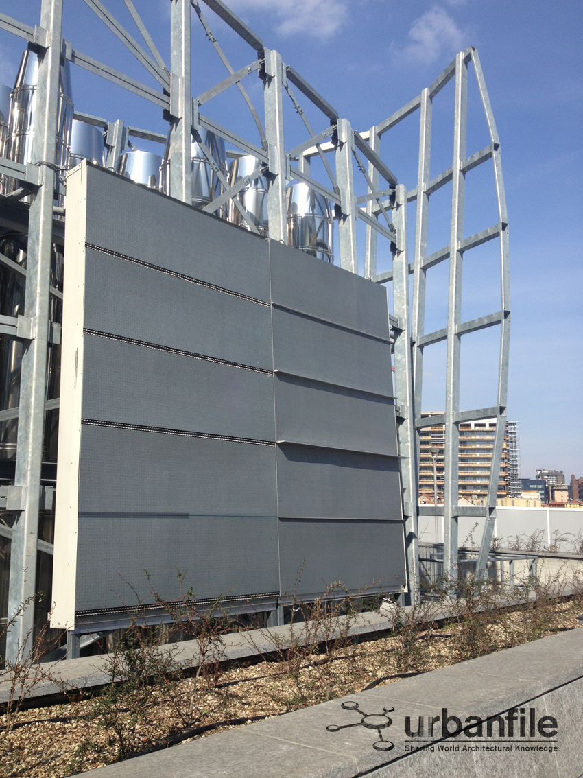 Da poco sono comparsi dei pannelli sulla struttura metallica, realizzata per nascondere i condotti di esalazione, con