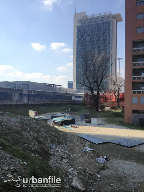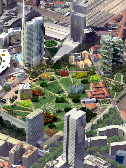 Aspettando che il cantiere a Porta Nuova venga smantellato per far posto al nuovo parco creato dallo studio olandese di insideoutside, ecco la situazione attuale del futuro giardino, dal lato ovest e visto dalla torre Unicredit Pelli.
