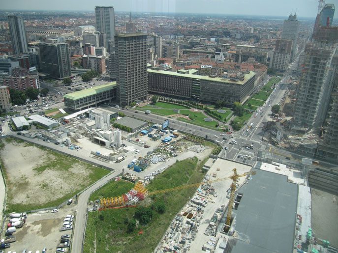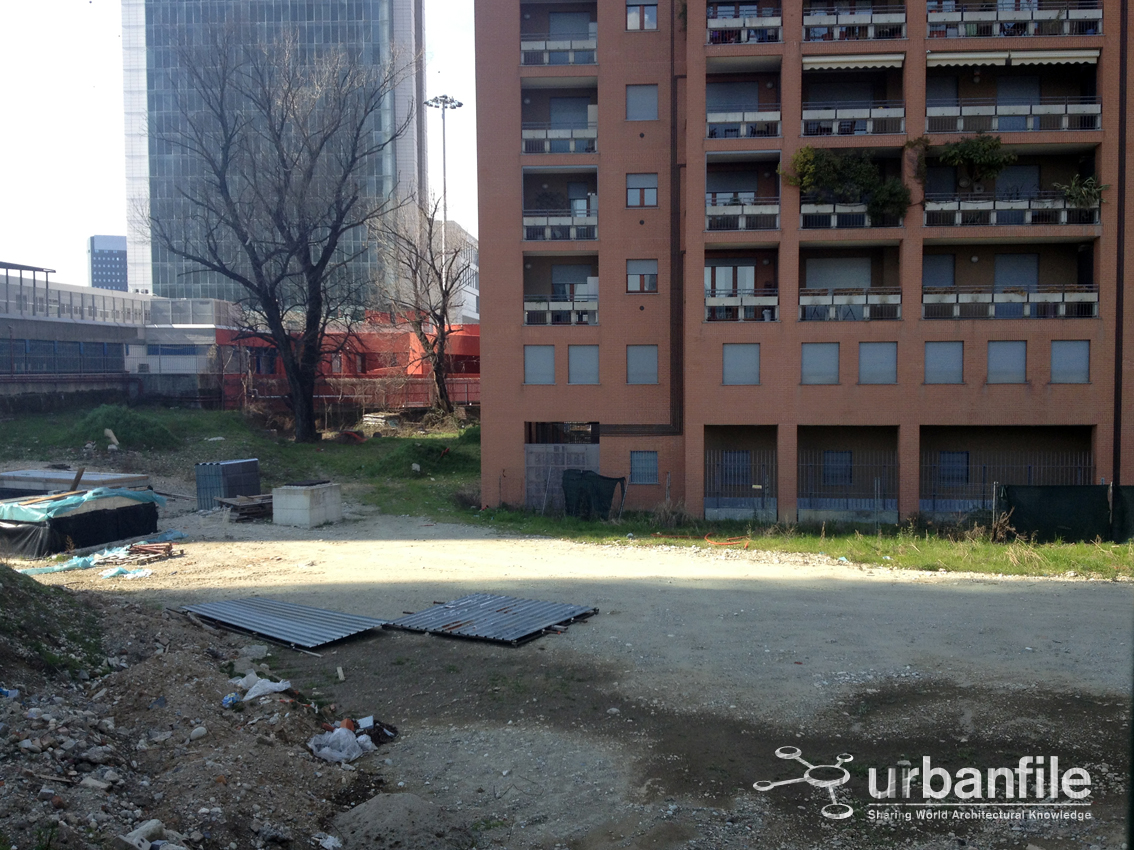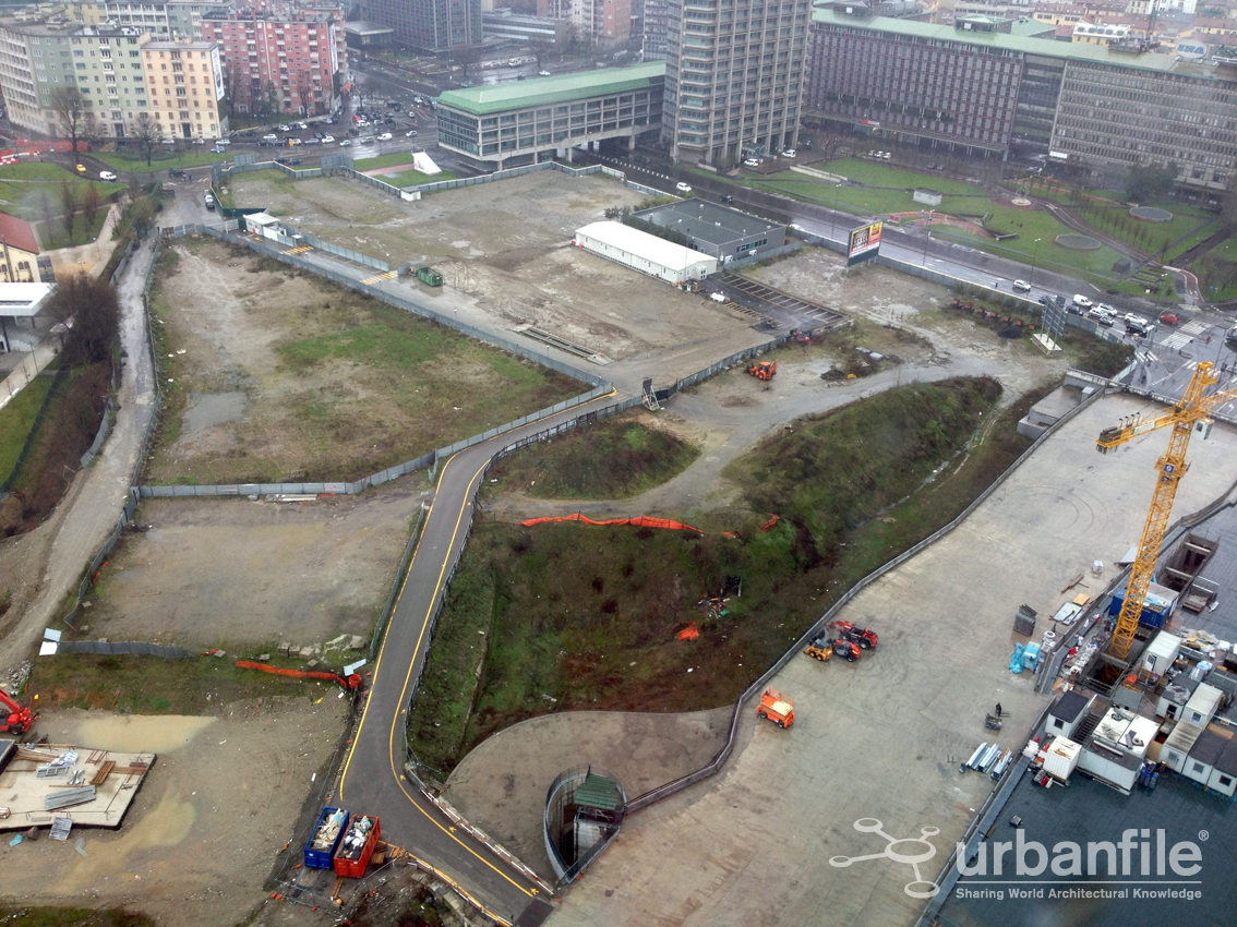 Aspettando che il cantiere a Porta Nuova venga smantellato per far posto al nuovo parco creato dallo studio olandese di insideoutside, ecco la situazione attuale del futuro giardino, dal lato ovest e visto dalla torre Unicredit Pelli.