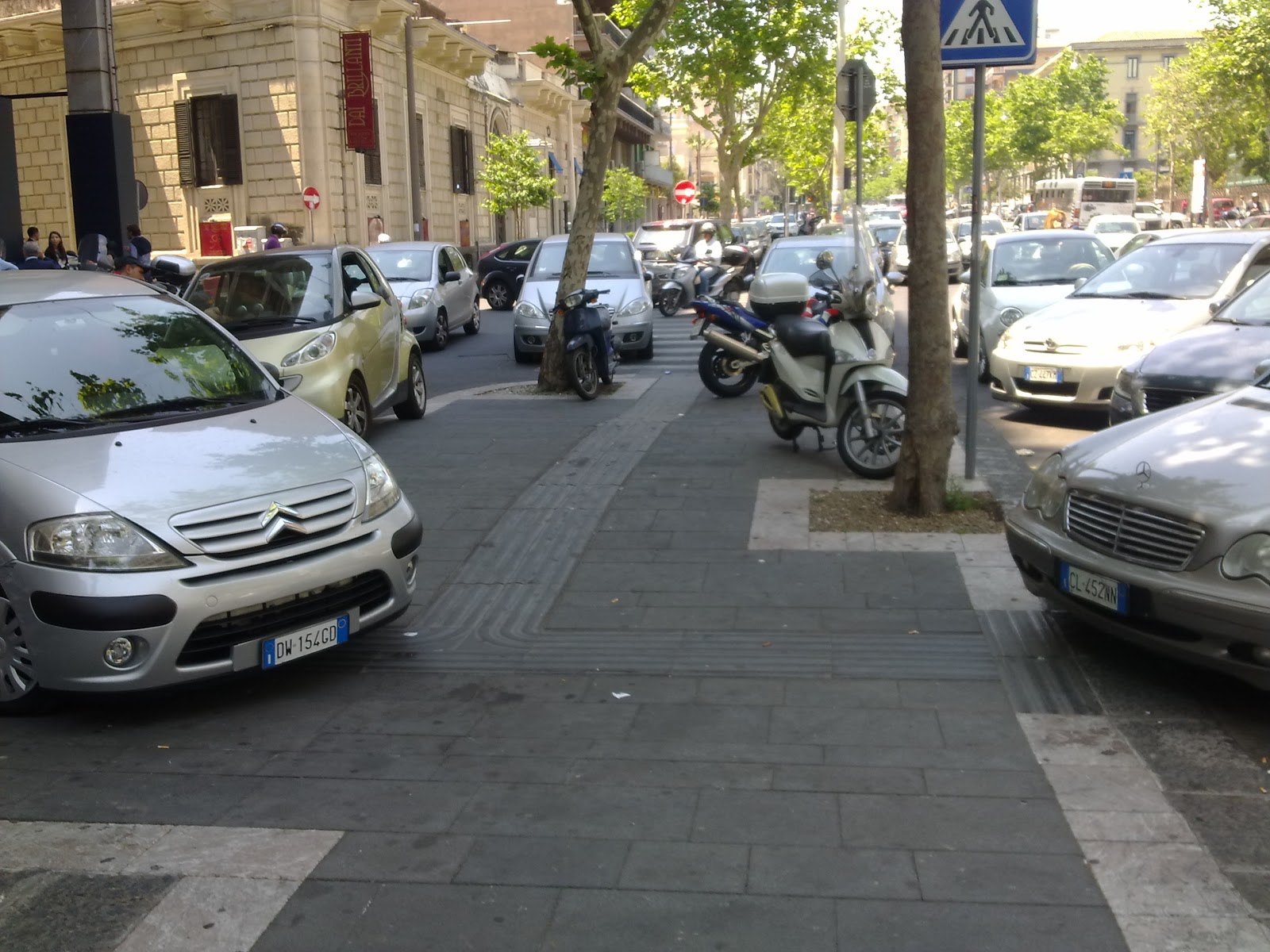 Spicca innanzitutto l’indisciplina impunita di molti catanesi che non si creano alcun problema a recare evidenti disagi a scorrimento veicolare e transito dei pedoni, poiché si parcheggia continuamente sui marciapiedi, sulle rampe per disabili e carrozzine, davanti alle fermate dei bus, in doppia fila.