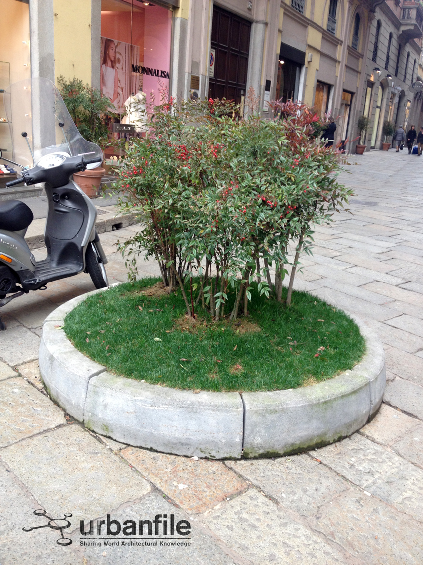 Via elegante, tra le più acclamate e glamour al mondo, assieme alla vicina Monte Napoleone. Eppure via della Spiga ha un arredo urbano dozzinale. Forse in pochi si sono accorti di come siano state fatte le aiuole all’inizio e alla fine della graziosa via, ma a noi di Urbanfile non è sfuggito. Sono formate da un cumulo di terra trattenuto da dei cordoli in cemento (solitamente usati per i marciapiedi) sistemato a verde con un po’ d’erba, dove son state posate delle piante. Di solito si fa così alle fiere temporanee, non in una lussuosa via alla Moda. Possibile che i signori del Lusso Made in Italy non possano mettersi assieme e sborsare due soldi per rendere questi interventi meno dozzinali?