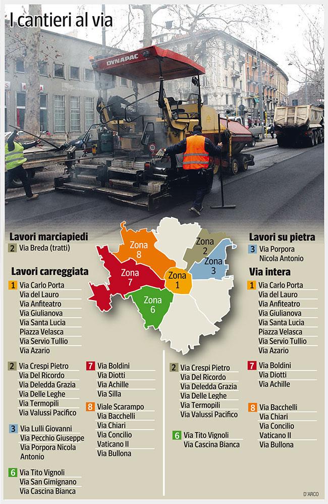 «Questo inverno – precisa l’assessore – abbiamo avuto molte più nevicate del solito, che corrispondono a molte più salature. E il sale, come noto, è nemico dell’asfalto. Inoltre il maltempo delle ultime settimane ha rallentato gli interventi e reso meno efficaci quelli svolti». I numeri sulle buche parlano chiaro: 14.092 coperte nel 2012, contro le 5941 dei soli primi due mesi del 2013, con un trend decisamente in crescita. Così per i masselli, dell’amato e odiato pavé: 5638 sono quelli aggiustati nel 2012, 1192 quelli già curati nei primi due mesi del 2013.