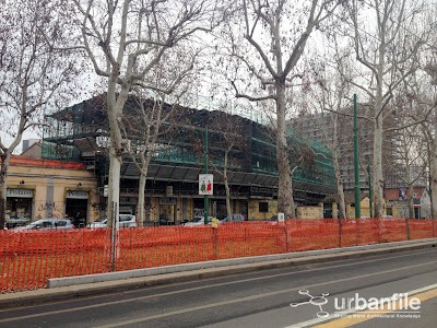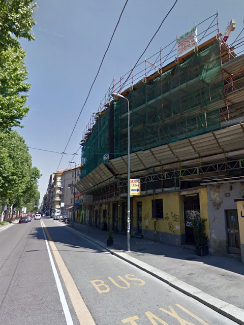 Pare sia così da mesi. Forse un sopralzo ancora da iniziare; o la riparazione del tetto. L’edificio ad un piano di fine ottocento che per anni ha ospitato fra le varie cose anche i locali della storica discoteca Plastic, è nascosto da impalcature di cui non si conosce la finalità.