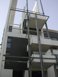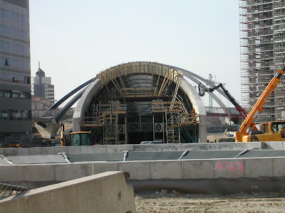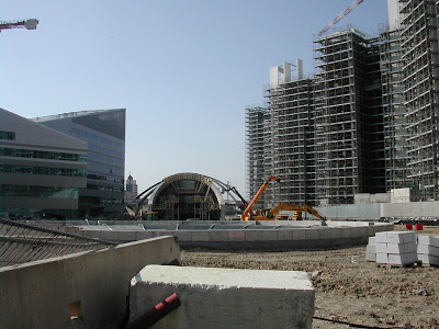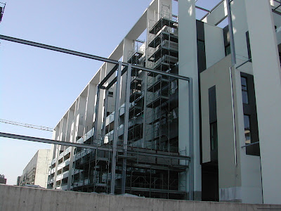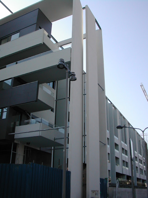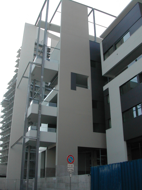 Le residenze lungo Via Marco Ulpio Traiano sono quasi ultimate. Questo ultimo lotto è stato progettato da Guido Canali, che insieme a Cino Zucchi e al gruppo Valle Architetti ha contribuito a disegnare un insieme molto variegato di edifici al posto delle fabbriche dell’Alfa Romeo al Portello. Questo comparto, solo residenziale, è l’ultimo ad essere consegnato. La composizione degli edifici è molto movimentata, mi piacciono molto queste “cornici” che inglobano le terrazze e che caratterizzano l’intero layout del complesso, ma viene comunque mantenuta una impressione generale di pulizia formale. Forse un appunto da farsi potrebbe essere l’effetto cortina un po’ troppo massiccio. Le ultime foto riguardano l’uscita del tunnel di Via Gattamelata.