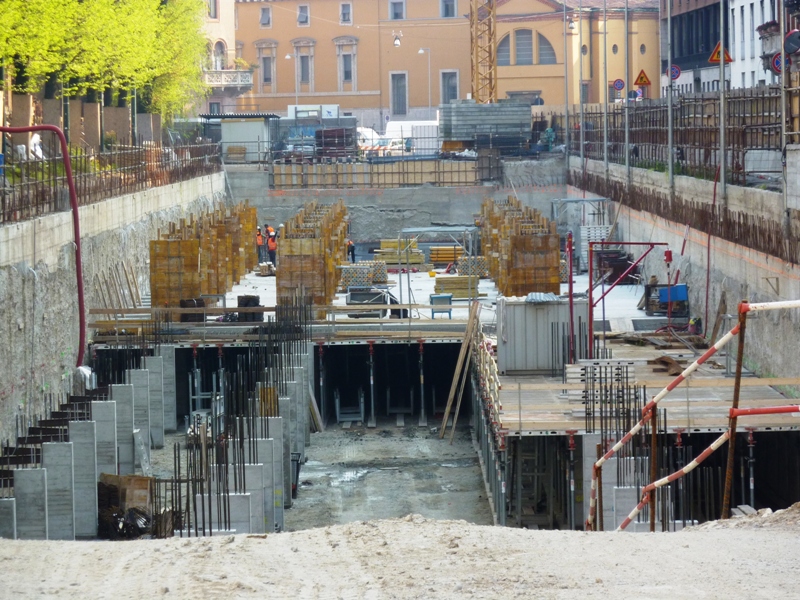 Dalla foto non mi pare stiano facendo 5 piani interrati. Comunque sia pare stiano andando abbastanza velocemente. Piazza Sant’Ambrogio non può rimanere in queste condizioni troppo a lungo.
