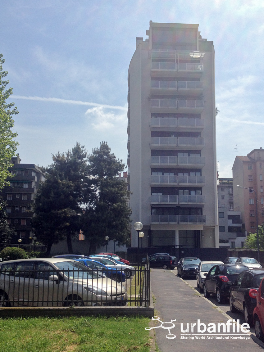 Quando venne costruita tra il 2009 e il 2010 suscitò polemiche a non finire, nemmeno fosse stata progettata di 50 piani in un quartiere di villette! La torre, di bell’aspetto, si trova sul retro del complesso che si sviluppa lungo via Lorenteggio ai civici 26-28-30-32, ma l’ingresso si trova in via Scipione Riva Rocci al 18. Sorti al posto di alcuni capannoni industriali e ad uso terziario, questo insieme di edifici si distingue per la particolarità di racchiudere sul fronte di Via Lorenteggio una palazzina di 7 piani, presumo anni Cinquanta, che si trova al civico 30, tra due edifici a due piani che lasciano intravedere la nuova costruzione retostante. La torre ha una facciata a nord-est curvilinea, che le da una forma originale.