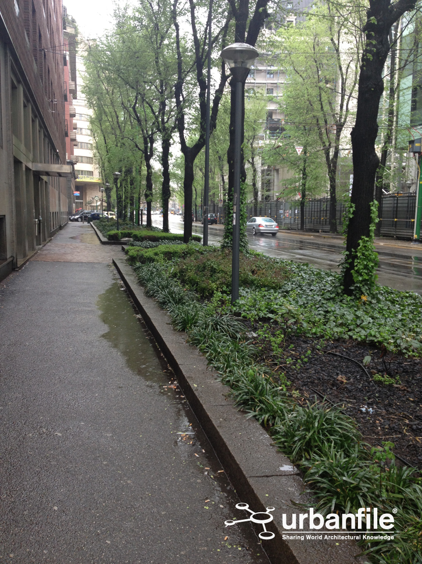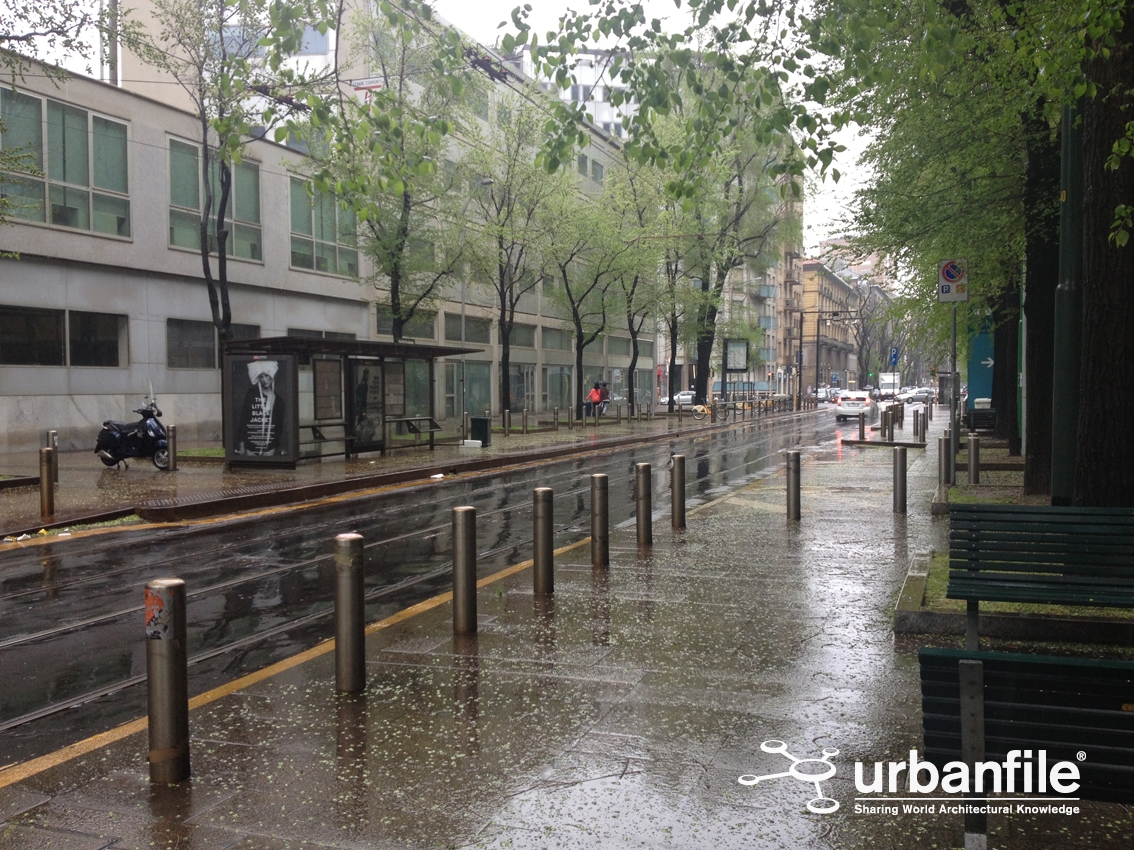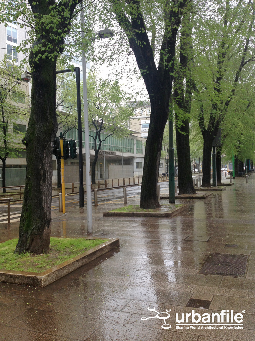 Percorrendola, si osserva che la via diventa da prima alberata, coi soliti parcheggi sotto le fronde con un terreno disconnesso e fangoso ad ogni pioggia, per poi assumere un aspetto internazionale, coi marciapiedi ordinati e piastrellati in pietra (oramai color ruggine per i depositi metallici conseguenti all’attrito fra tram e rotaia), panchine e aiuole ben tenute; infatti siamo sotto il Pirellone, le istituzioni aiutano.