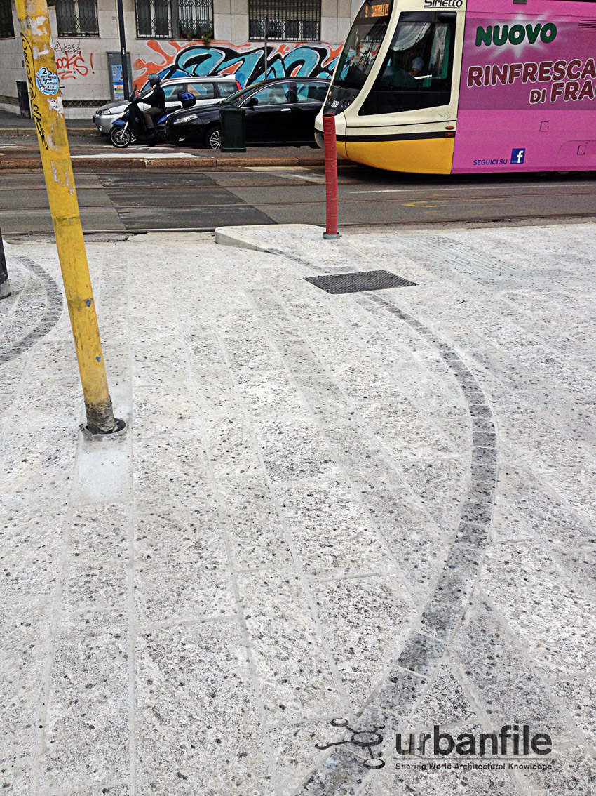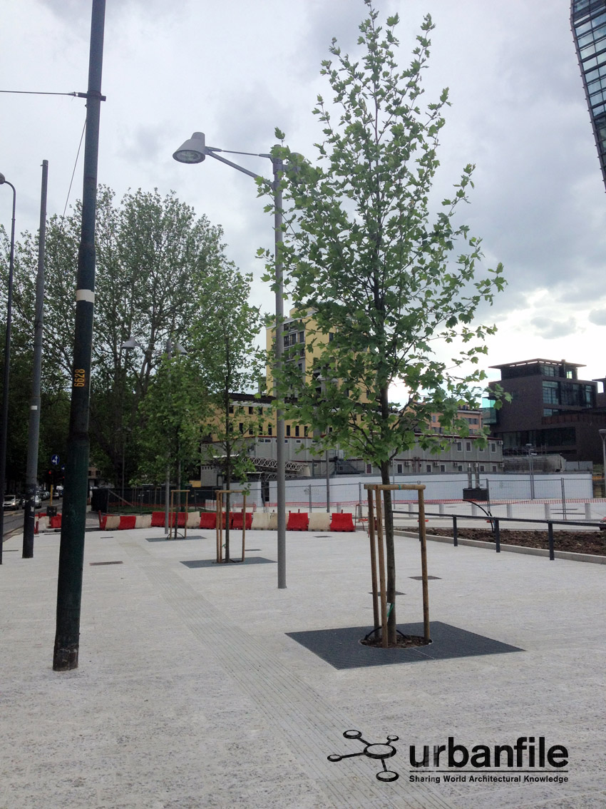 In Piazza San Gioachimo e per la precisione in Via Galileo Galilei, dove c’è la fermata del Tram, è stato liberato e consegnato alla città il marciapiede e l’aiuola facenti parte degli adeguamenti per il nuovo complesso delle Varesine di Porta Nuova. Beola, rastrelliera per il BikeMi, piante e aiuola.
