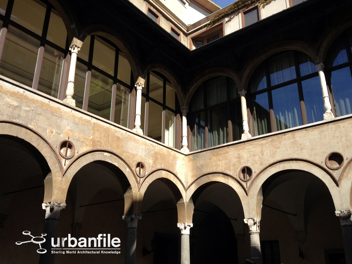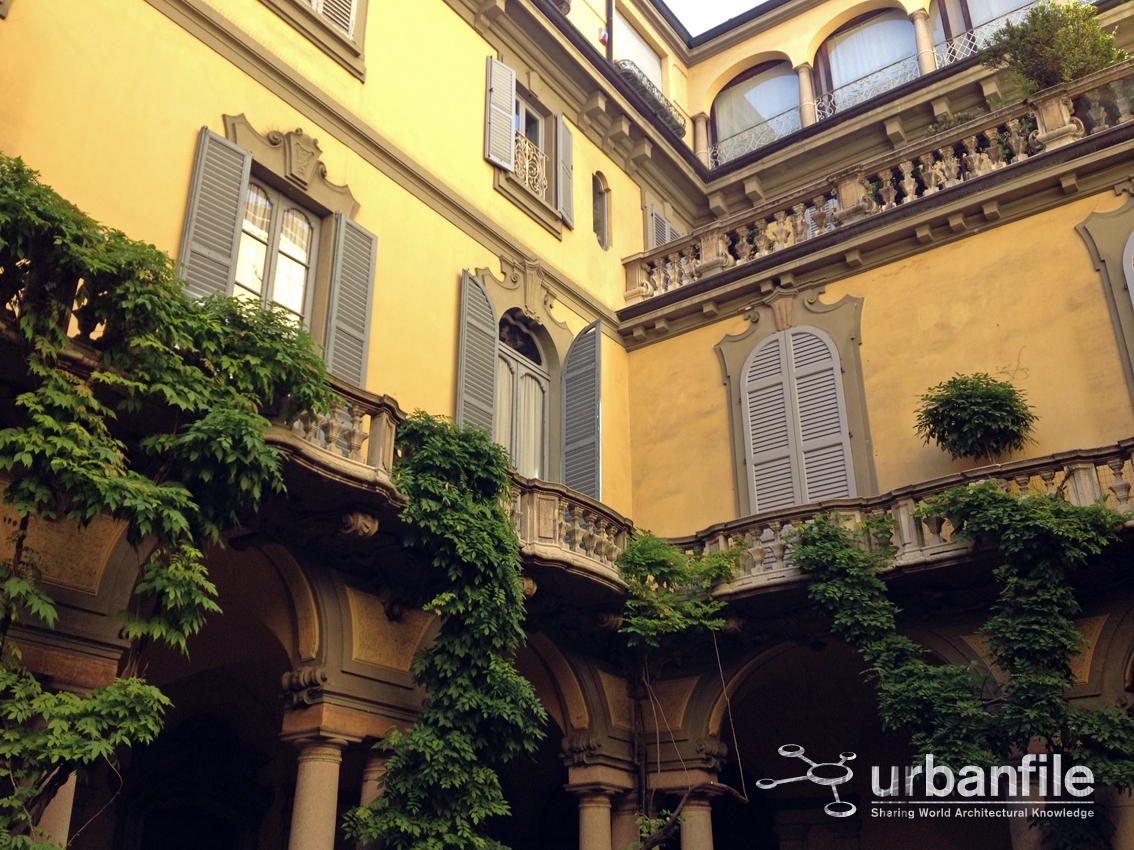 Il bellissimo cortile neoclassico di Palazzo Diotti in Corso Monforte 31 ora sede della Prefettura.