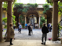 L’eleganza nascosta di Palazzo secentesco e settecentesco di Visconti di Grazzano in via Cino del Duca 8. Con la graziosa piccola grotta artificiale con ninfa e figure marine nel secondo cortile.