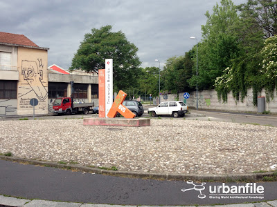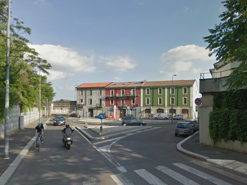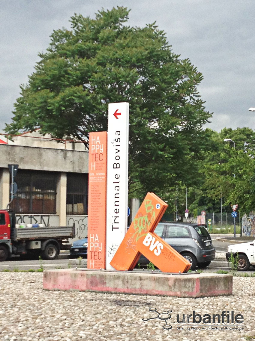 L’esperimento della Triennale alla Bovisa è fallito già da qualche anno, eppure in questo spiazzo tra via Giampietrino, la via Privata Codigoro e via Raffaele Lambruschini (che detto tra noi poteva essere fatto a verde anziché in una rotonda di cemento) si trova ancora l’insegna che annuncia la presenza del padiglione esterno che è stato della Triennale. Un filo di attenzione, anche per queste piccole cose, sarebbe auspicabile.