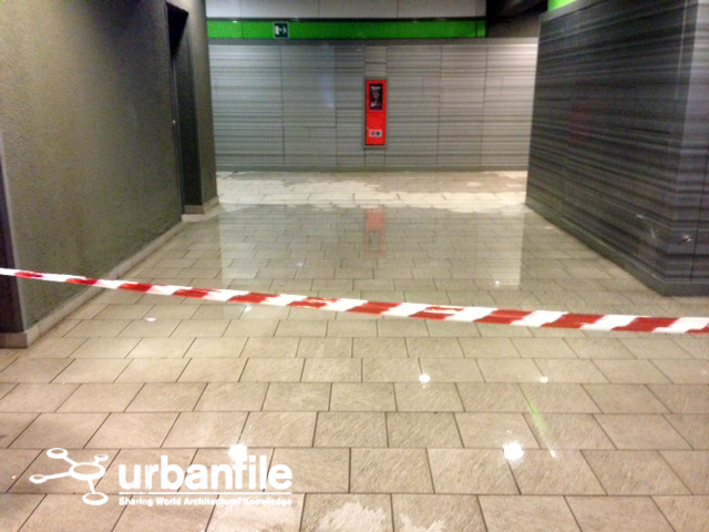 La stazione della Metro di Loreto è da anni a rischio inondazioni a causa della falda acquifera troppo alta. Questa in foto è la situazione di ieri: banchine in parte allagate e transennate.